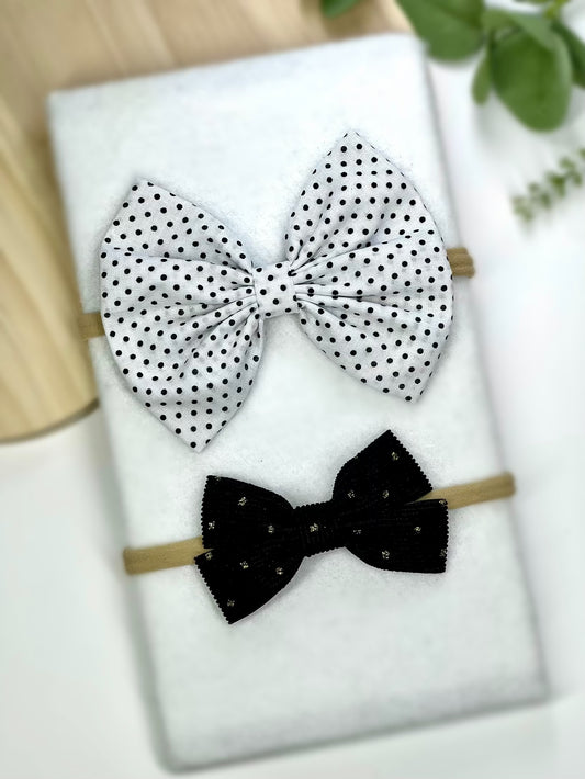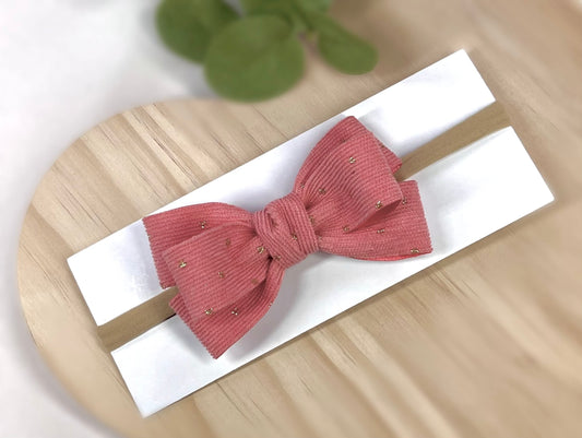 Corduroy Stripe Ribbon with Gold Dots - Soft Stretchy Nylon Baby Headband with Glittery Bow – 11 Vibrant Colors Available