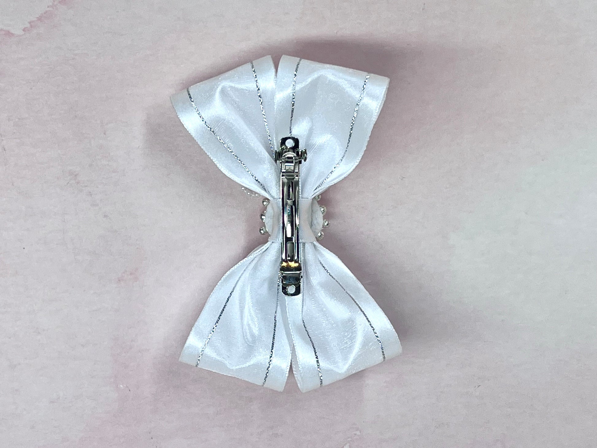 Elegant Satin and Organza Hair Clips Bow with Pearl and Rhinestone Embellishment – Ideal for Weddings and Celebrations.
