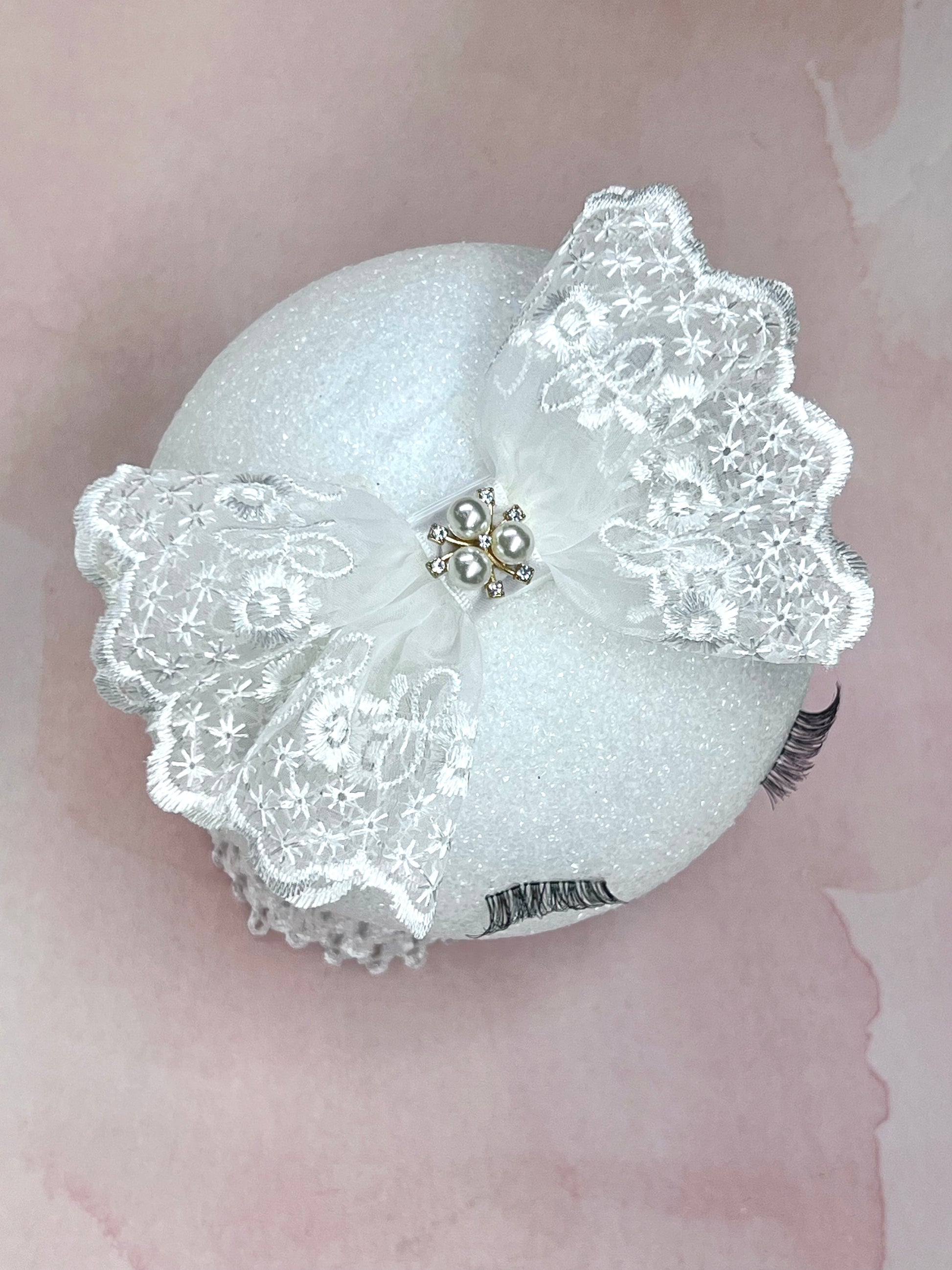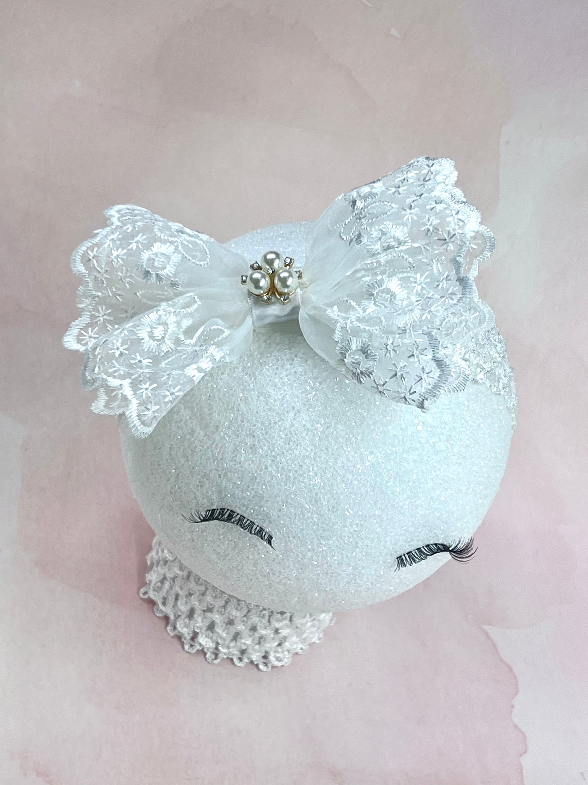 Exquisite Lace Elastic Headband with Pearl and Rhinestone Center – Perfect for Newborns and Special Occasions - Wedding Hair Bow Accessories